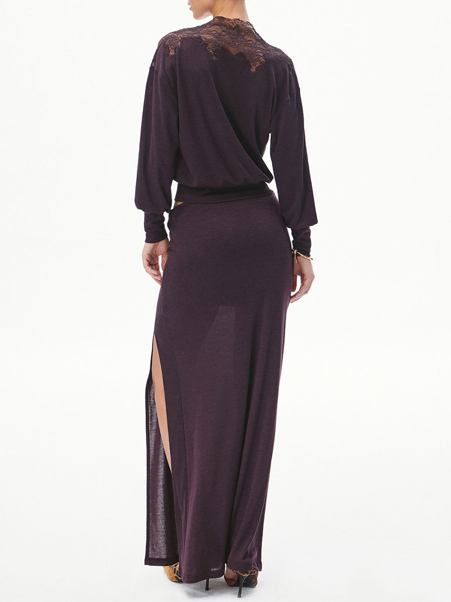 Two Piece Set, V Neck Long Sleeve Pullover, Lace Sequined Shirring, Polyester
