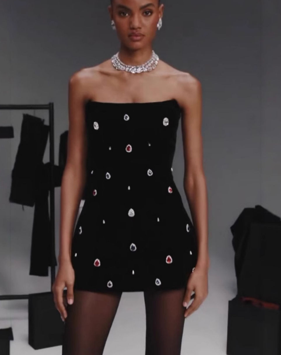 Strapless Bodycon Mini Dress, Backless Sheath Party Dress, Black Diamond Bead