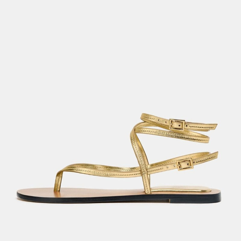 Ankle Strap Flat Sandals, Open Toe Casual Footwear, Gold Buckle Ankle-Wrap
