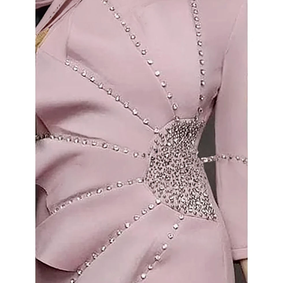 O-Neck Tea-Length Straight Evening Dresses with Crystal Decoration, Formal Occas