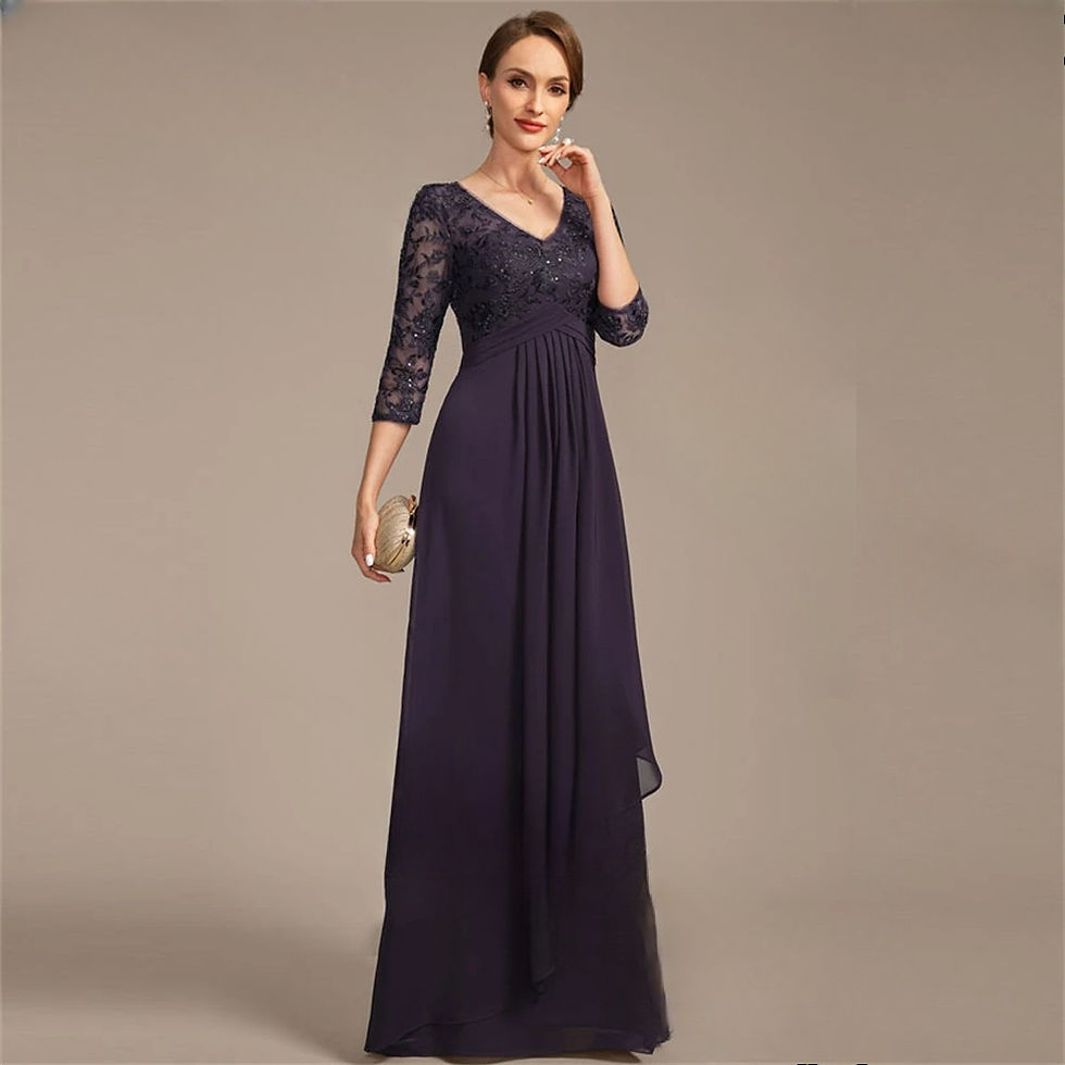Mother of the Bride Dress Evening Party Ball Gown Floor-Length Chiffon Half Slee