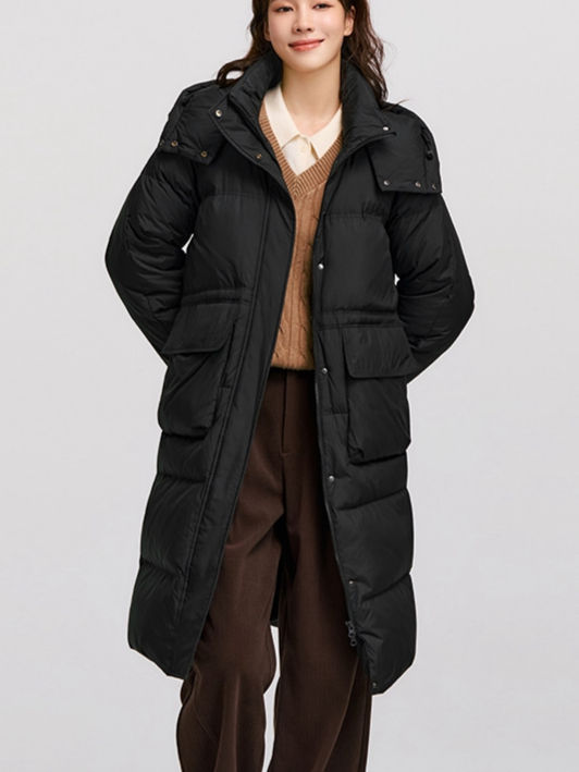 Down Filled Puffer Jacket, Long Hooded Coat with Detachable Hood, Waterproof