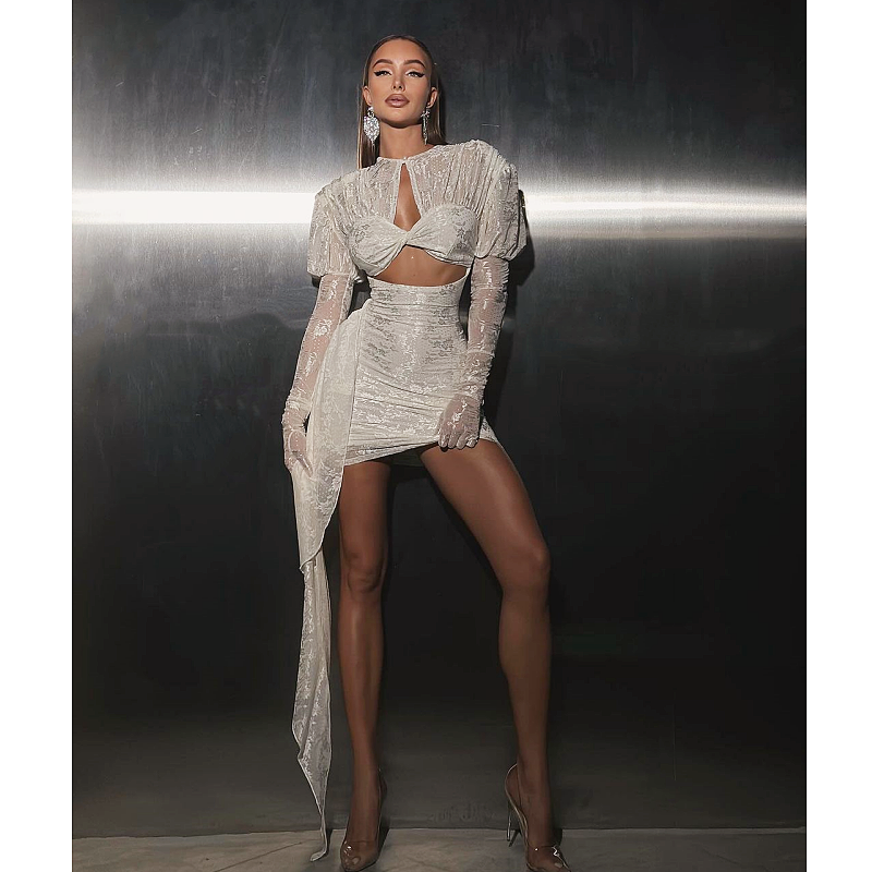 Lace Hollow Out Mini Evening Party Dress, Off Shoulder, Slash Neck, Slim Fit Dre