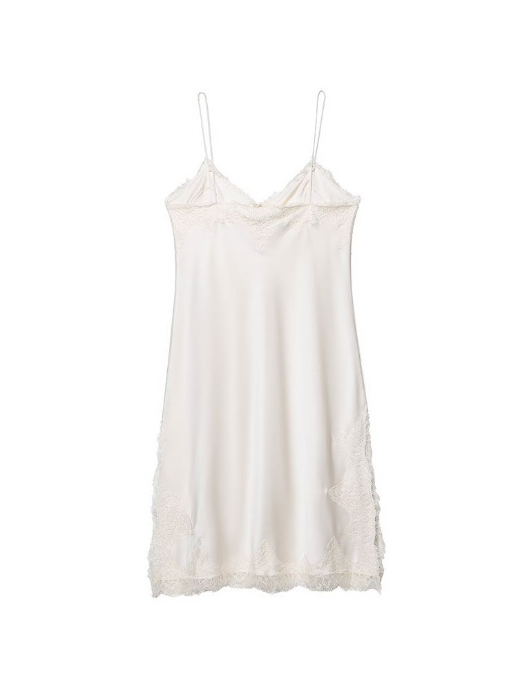 Sleeveless A-Line Mini Dress, Satin V-Neck Sling Dress, Backless Lace Trim