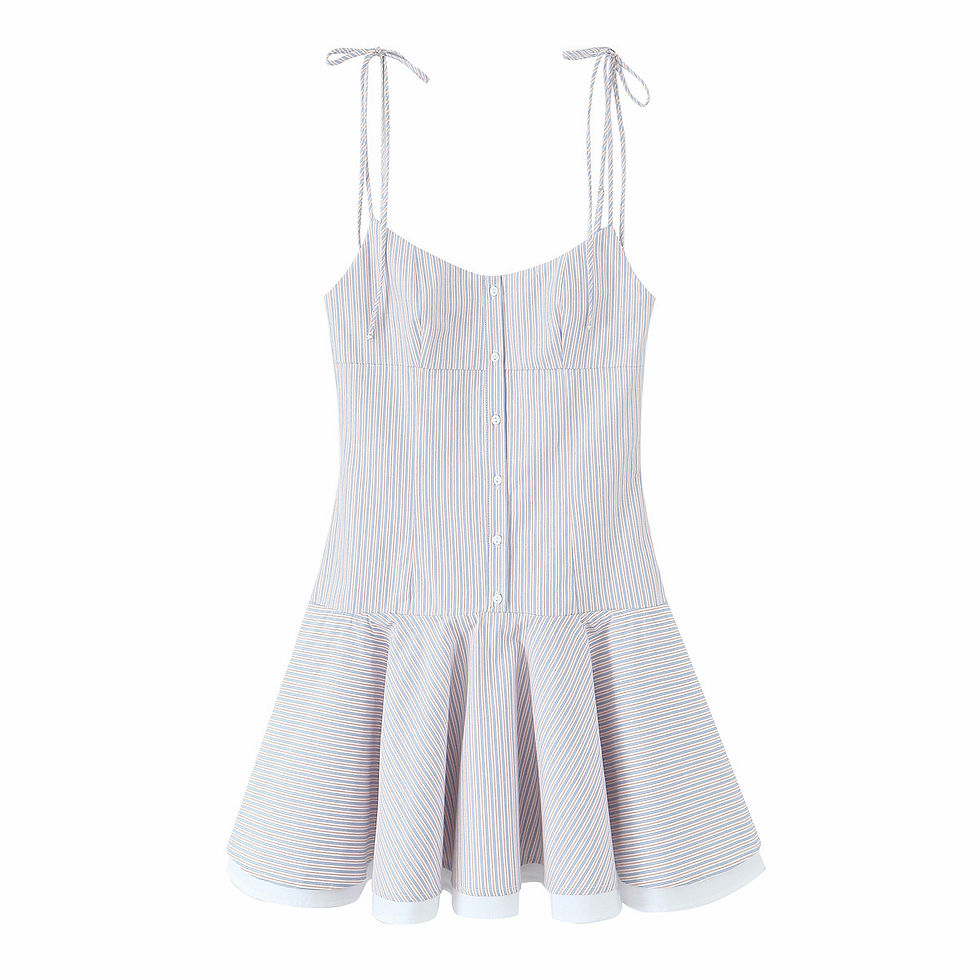 Spaghetti Strap A-Line Dress, Striped Casual Mini Dress with Bow Detail