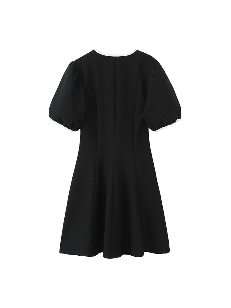 V-Neck A-Line Mini Dress with Bow, Puff Sleeve Party Attire, Solid Polyester