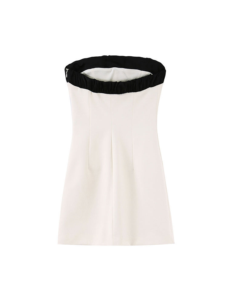 Strapless Mini Dress, Backless A-Line Dress, Solid Polyester with Bow Detail