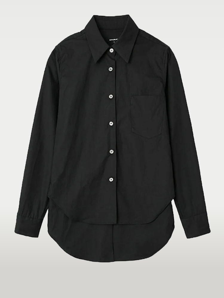Women Black Color-Block Big Size Blouse New Lapel Long Sleeve Loose Fit Shirt F