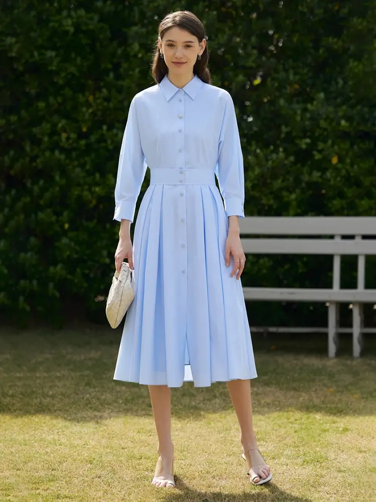 White Pleated Shirt Dress Spring Casual Minimalist