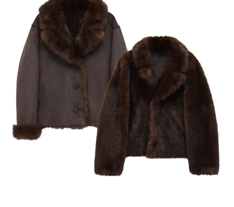 Double-Sided Faux Fur Jacket, Vintage Lapel Outerwear, Single Breasted Coat