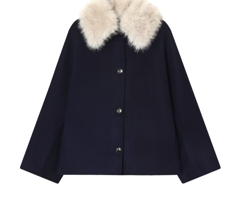 Single Breasted Wool Blend Coat, Batwing Sleeve Jacket with Faux Fur Collar