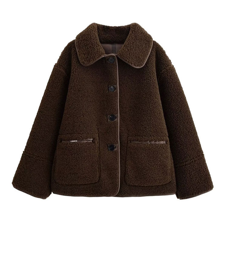 Faux Fur Teddy Coat, Single Breasted Jacket, Mid-Length Dropped Shoulder