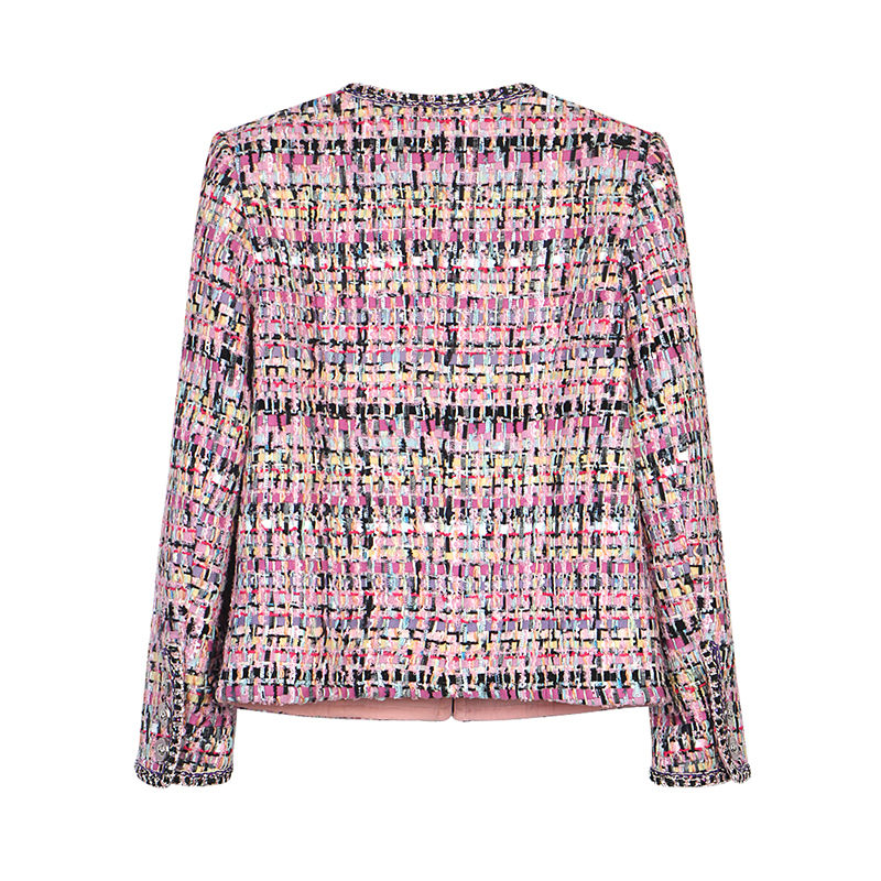 Tweed Office Jacket, Round Neck Commuter Coat, Color Block Single Breasted