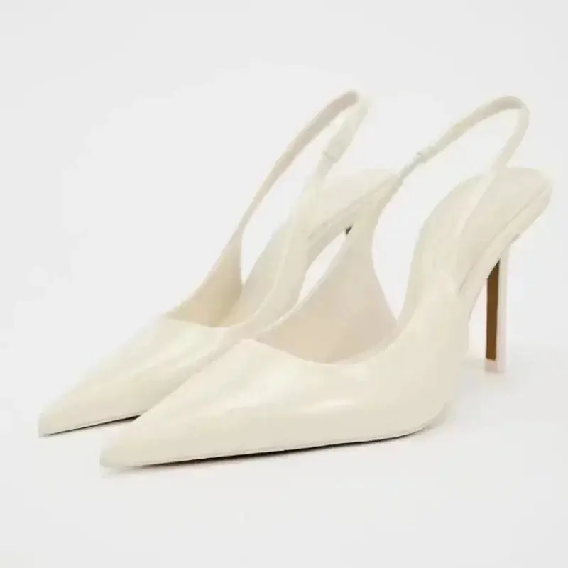 Selena Gomez White Pointed Toe Square Heel Sandals, Women's Dress Sandals