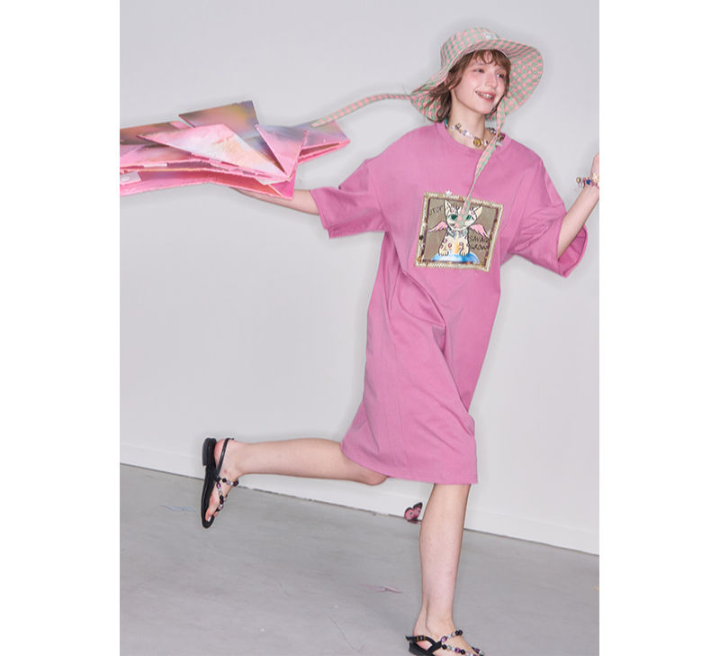 Cartoon Printed T-Shirt Dress, Short Sleeve Mid-Calf, Y2K O-Neck Pullover