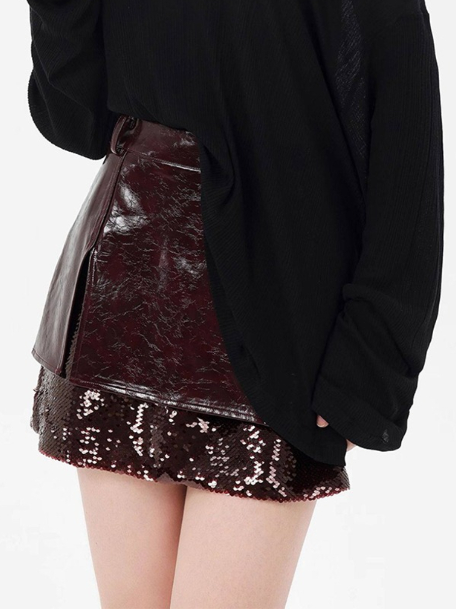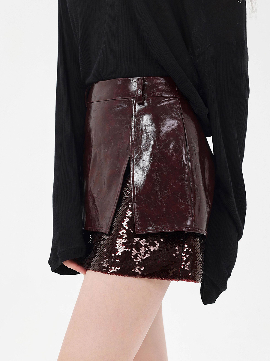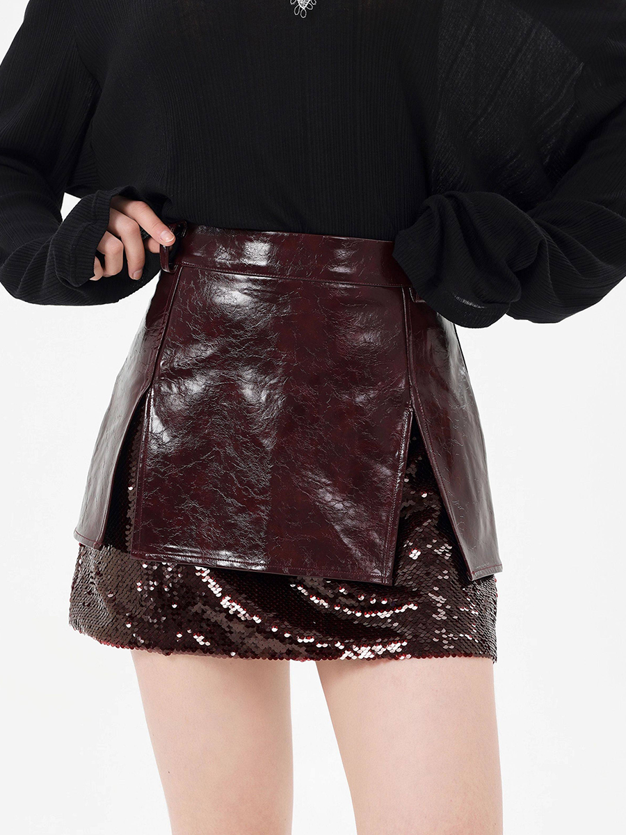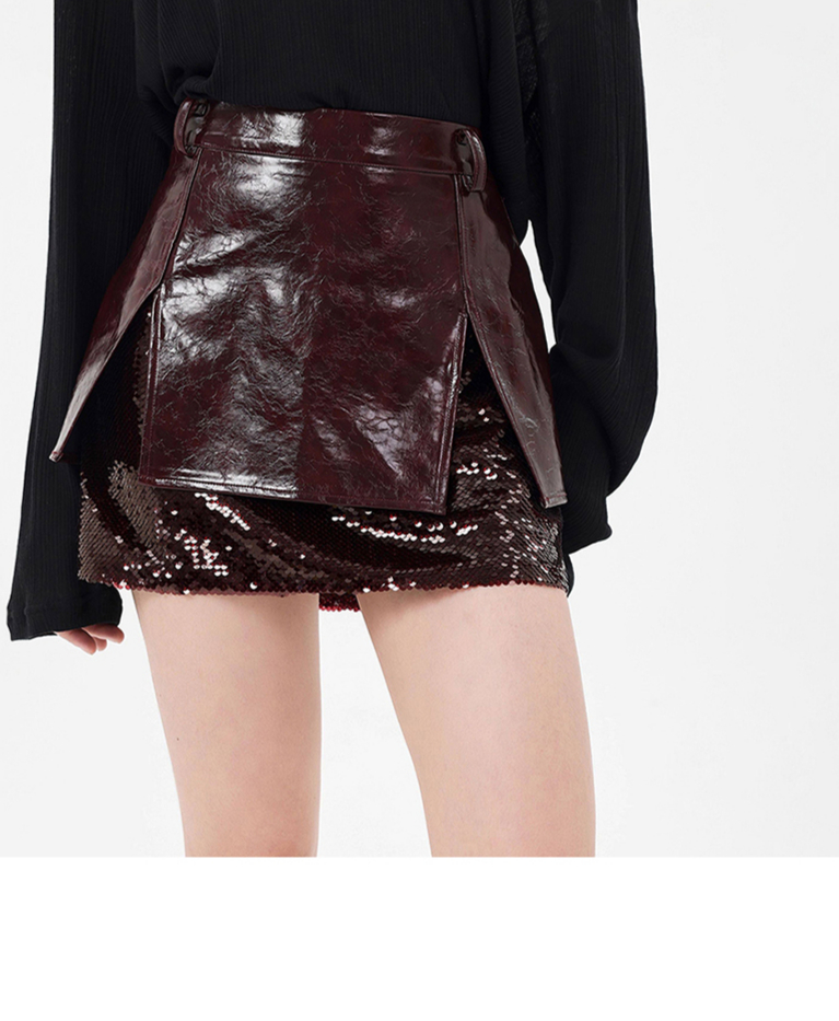 Slimming Skirts, Sequins Sashes, Wine Red Polyester, Above Knee Mini