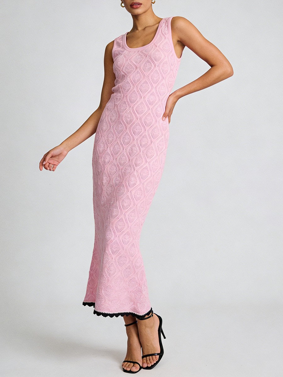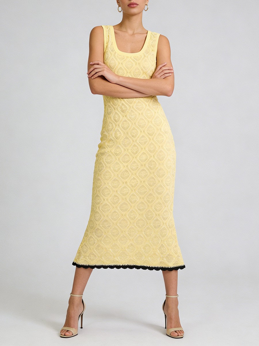Knit Long Dresses, Square Neck Sleeveless Trumpet Silhouette, Polyester