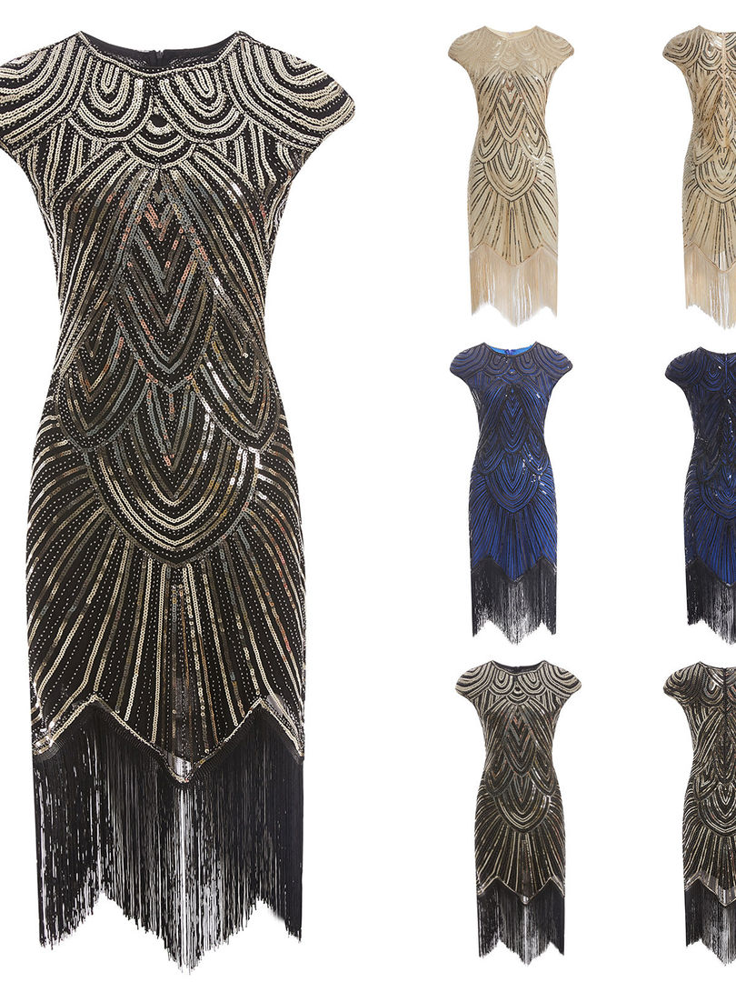 Vintage Great Gatsby Sequin Tassel Beaded O-Neck Sleeveless Party Sheath Dress
