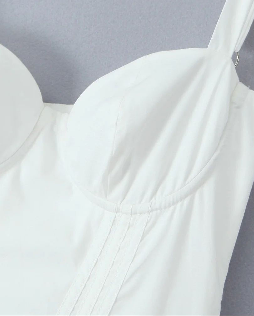 Tags: white sleeveless midi dress, black sleeveless midi dress, summer cotton blend dress, vintage style midi dress, fit and flare summer dress, spaghetti strap midi dress, empire waist midi dress, ruched pleated midi dress, low waist spliced dress, bra chest corset dress, summer wedding guest dress, casual summer midi dress, women's summer party dress, white and black summer dress.