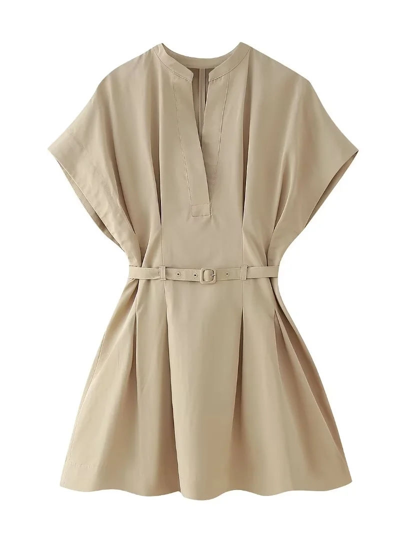 Tags: white A-line mini dress, short dress with cloak sleeves, v-neck summer dress for women, pleated short casual dress, solid color A-line dress, spring party dress above knee, women's dress with flowy sleeves, slim fit v-neck mini dress, elegant white short dress for summer, casual brunch outfit dress, non-stretch polyester A-line dress, white dress for summer date night, short sleeve pleated mini dress