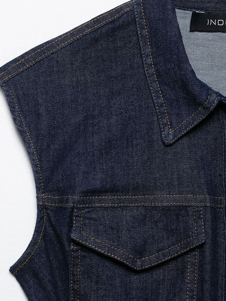 Tags: sleeveless denim mini dress women, casual summer A-line dress, button front denim dress, collared sleeveless mini dress, single breasted vest dress, chic denim dress for summer, above knee casual dress, spring summer sleeveless dress, regular fit denim style dress, women's tank top dress with collar, casual button down mini dress, A-line sleeveless vest dress, solid color denim mini dress, summer casual chic women's dress