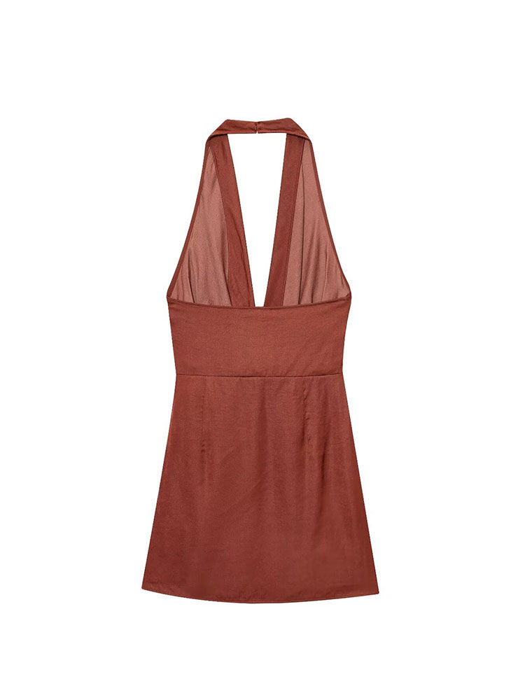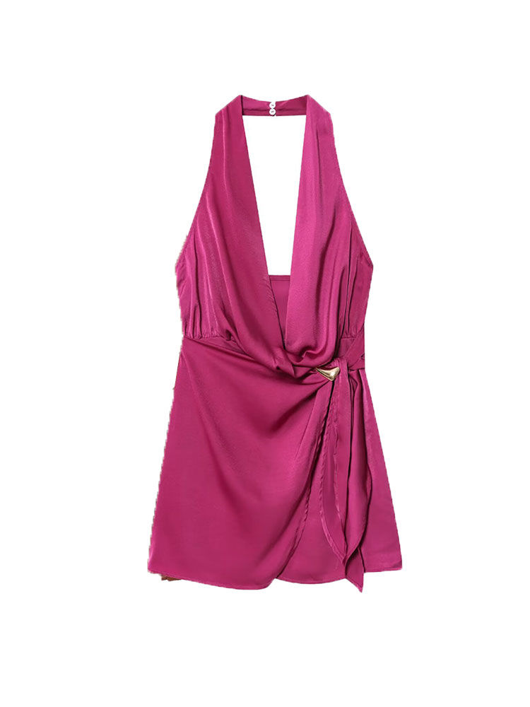 Tags: solid halter neck mini dress, backless A-line summer dress, chic v-neck party dress for women, sleeveless draped mini dress, sexy backless club dress solid color, casual spaghetti strap summer dress, women's solid color A-line dress, above knee halter dress for vacation, regular fit backless mini dress, spring summer casual mini dress, draped v-neck sleeveless dress, simple chic halter dress for going out, solid color sleeveless mini vestid, A-line mini dress with open back