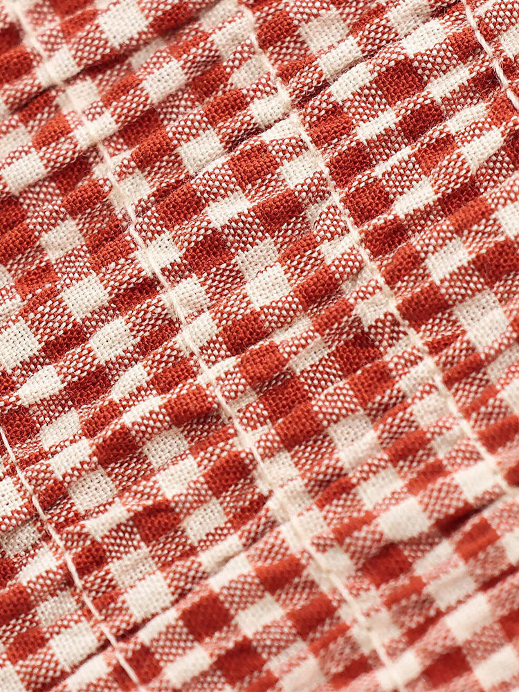 Plaid A-Line Dress, O-Neck Tank Gown, Mid-Calf Length with Folded Detail