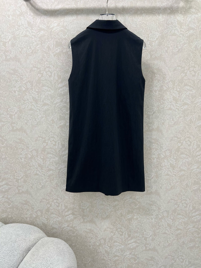 Sleeveless Workwear Lapel Vest Dress, Knee-Length Cotton Blend Loose Fit