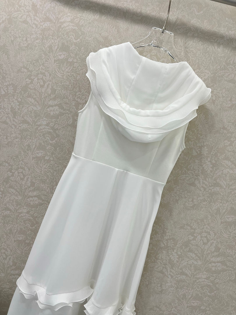 Ruffled Hooded Vest Dress, Mid-Calf Cotton Blend Button Lapel Regular Fit