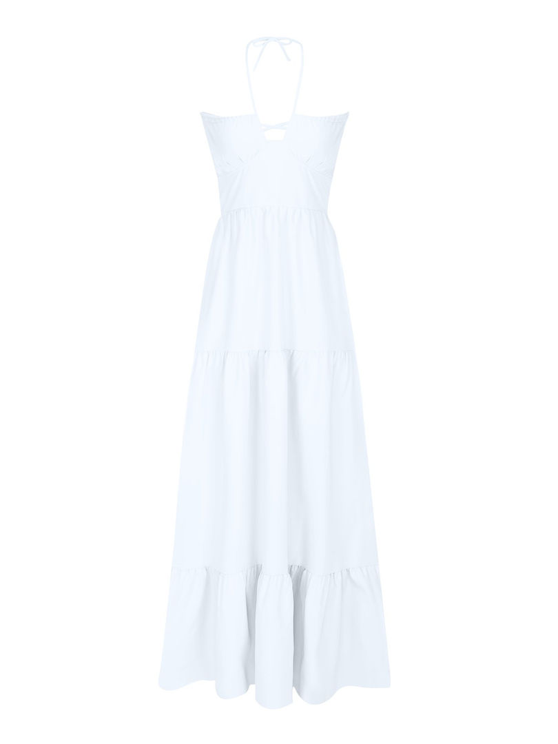 A-line Maxi Dress Sleeveless O-Neck Solid Polyester Vintage Party Vacation Beach
