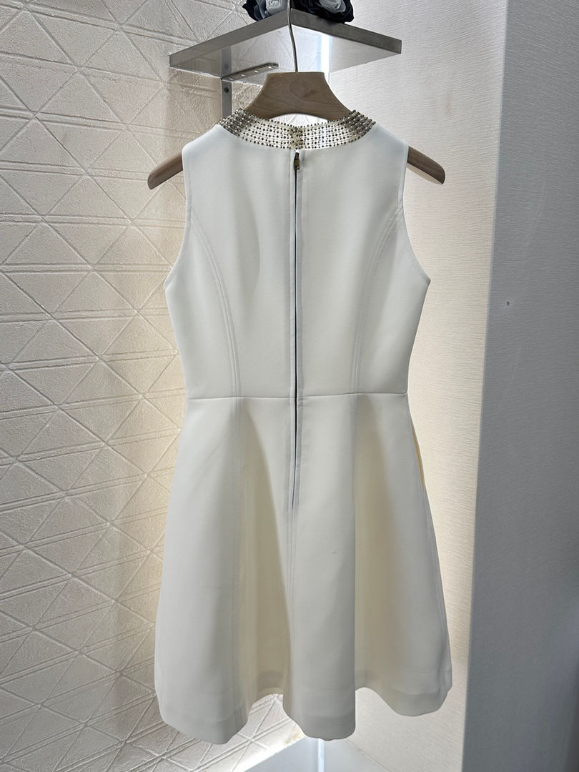 Sleeveless O-Neck Jersey Dress, Beaded Belts, Embroidered Flares, Knee-Length