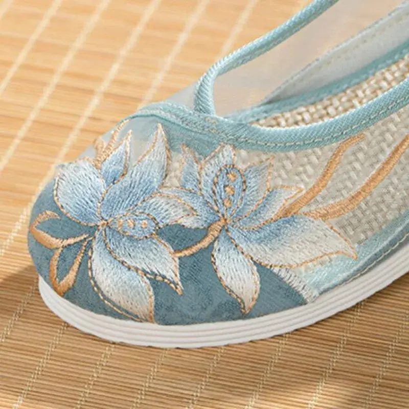 These ethnic-style pumps effortlessly blend comfort and chic aesthetics. Featuring delicate embroidery and a low heel, they are perfect for adding a touch of elegance to any outfit.