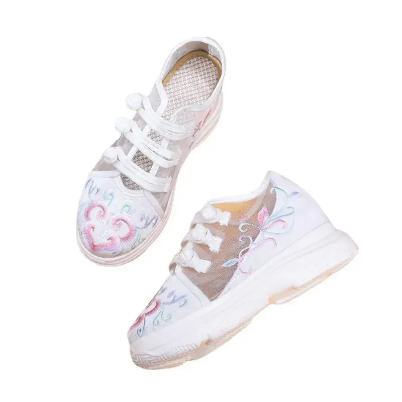 Air Mesh Embroidered Sneakers Breathable Casual Walking Shoes Lightweight