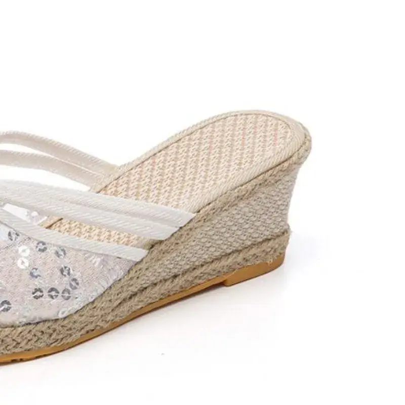 Air Mesh Wedge Slippers | Sequined Slides | Closed Toe
