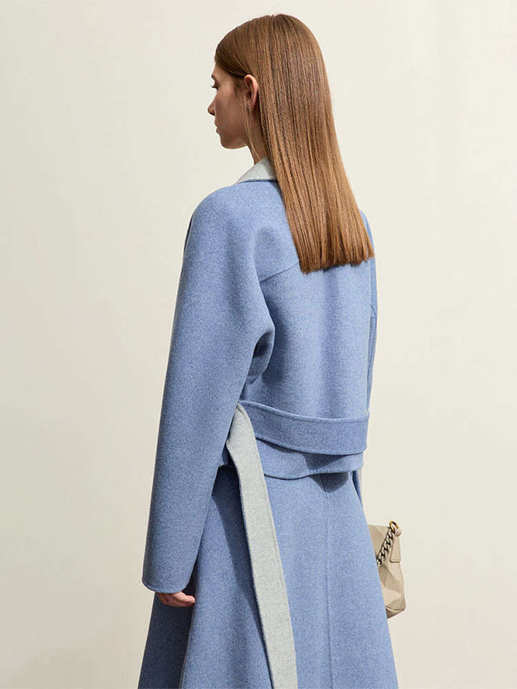 Lapel Collar Wool Blend Dress Set with Pockets, Sashes, Raglan Sleeve, Two Piece