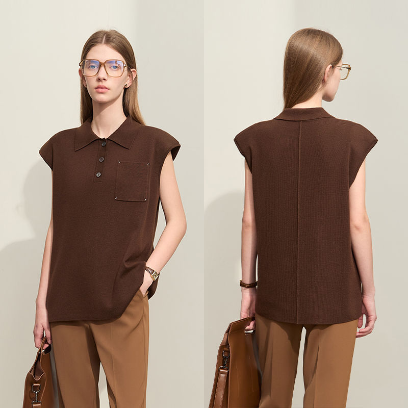 Tags:sleeveless knit top women, summer knitwear women, polo collar sweater vest, wide shoulder knit top, loose fitting knit top, women's summer tops 2024, casual knit top women, streetwear knit top women, wool blend knit top, silk blend knit top, women's sleeveless sweater vest, summer layering knit top, lightweight knit top women, women's summer knitwear trends.