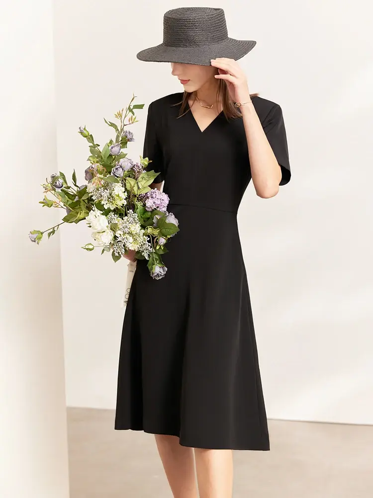Tags:black A-line midi dress for work, short sleeve office dress women, v neck summer dress for professionals, knee length polyester dress for women, comfortable work dress with stretch, loose fit summer dress for office, solid black dress for middle aged women, pullover midi dress for summer, A-line dress for women over 40, minimalist office dress for women, black work dress with short sleeves, summer A-line dress for business casual, black midi dress for women's office, short sleeve v neck work dress, black A-line dress for women.