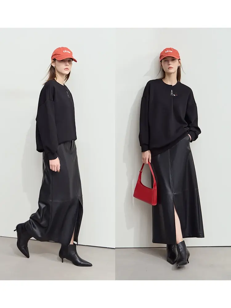 - A pleated skirt and ankle boots for a more elevated streetwear vibe.