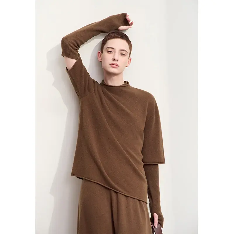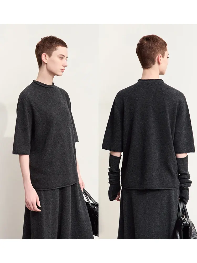 Wool Knit Pullover Top, Half Sleeve, Mock Neck, Regular Fit Sweater, Solid Knitw