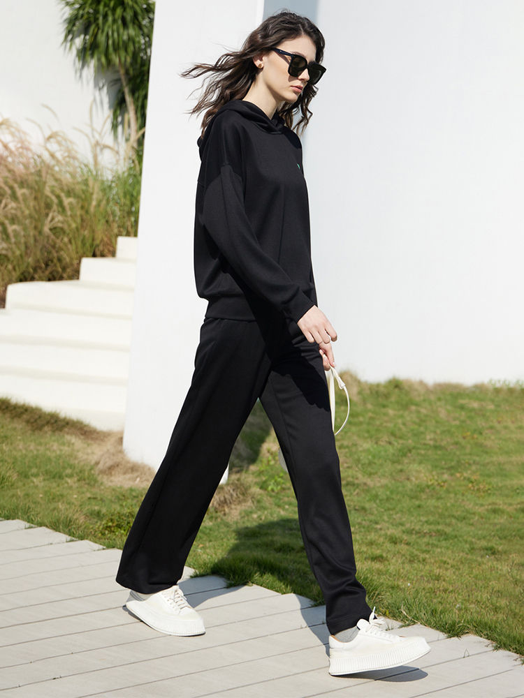 Sweatshirt Hoodie Knit O-Neck Pullover Loose Fit Viscose Blend Pants Set Black