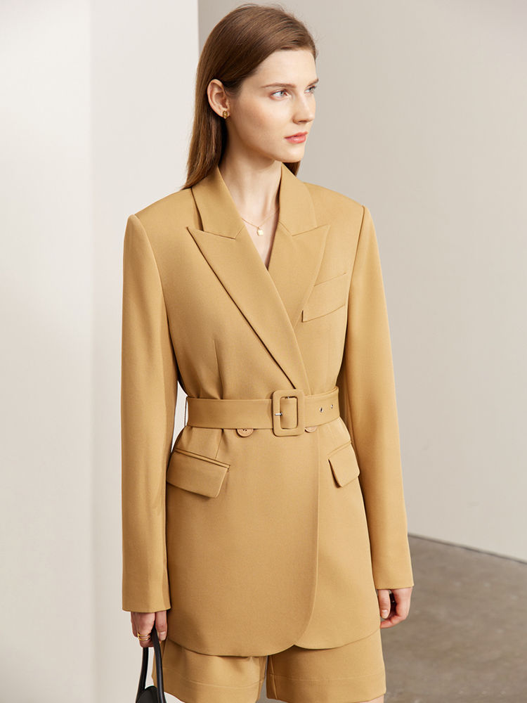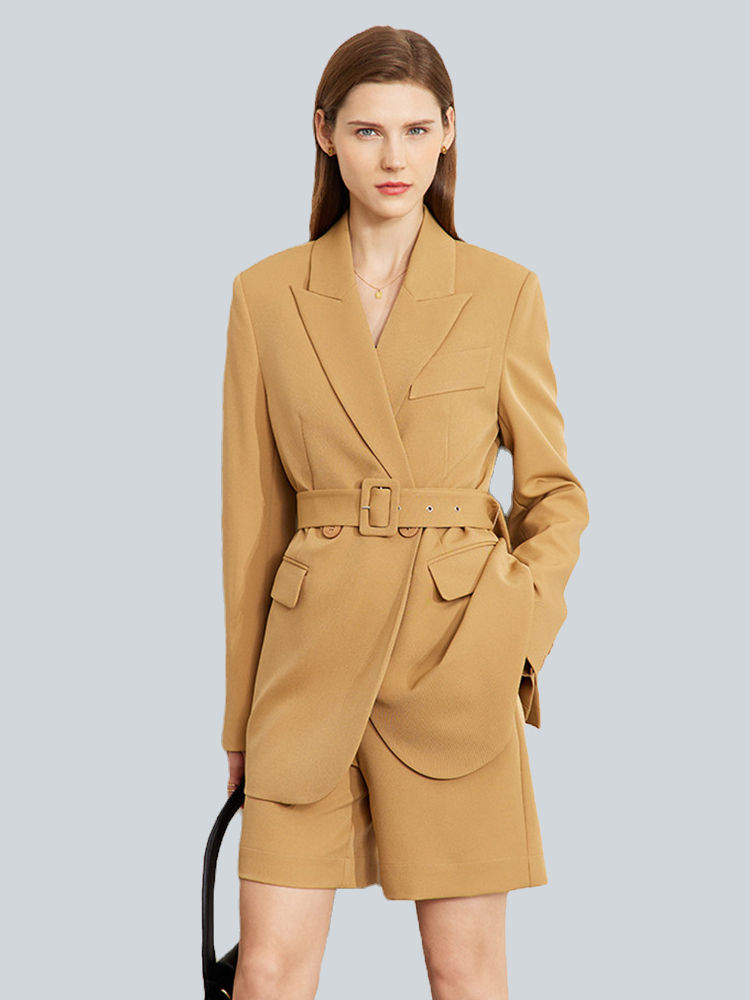 Tags:women's blazer skirt set, double breasted blazer dress, long sleeve blazer outfit, minimalist blazer women, office lady skirt suit, knee length skirt suit, autumn blazer set, spring blazer set, solid color blazer set, loose fit blazer set, turn down collar blazer set, button front blazer skirt, women's professional clothing sets, women's blazer and skirt combinations.