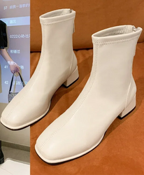 Ankle Boots Round Toe Leather Platform Chunky Sole Combat Boots