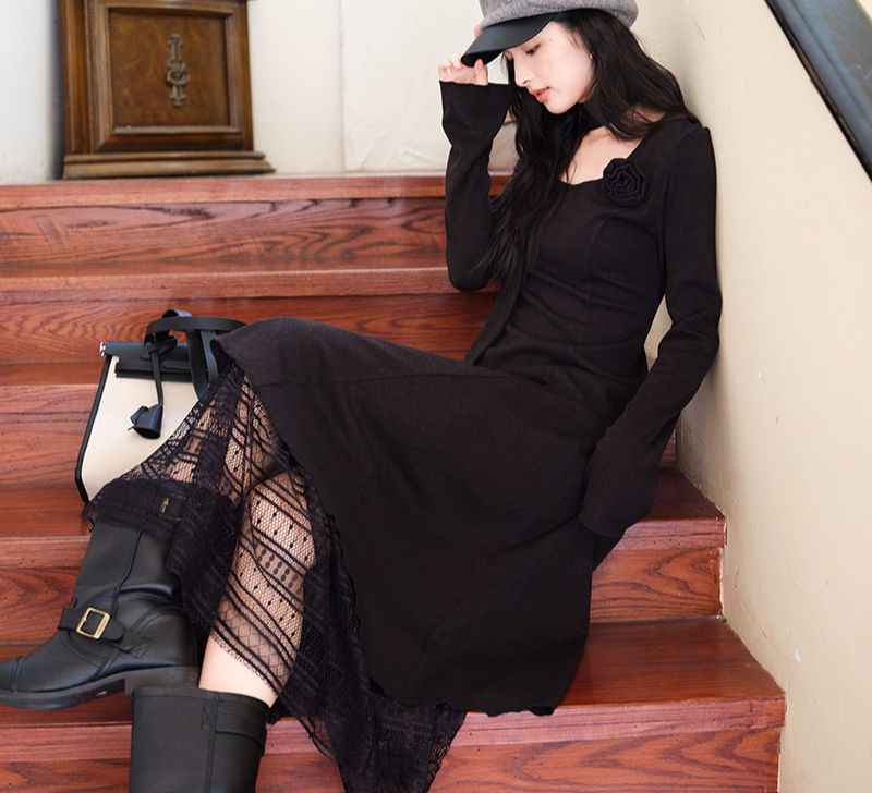 Tags: long sleeve black knit dress for women, ankle length black sweater dress, fit and flare long black dress, elegant black knit dress with belt, women's autumn winter long dress, black o-neck fit and flare dress, comfortable black dress for work, versatile black ankle-length dress, black knit midi dress long sleeve, classic black dress for fall events, solid black long sleeve dress for winter, black dress with sash waist, regular fit black knit maxi dress, French inspired elegant black dress