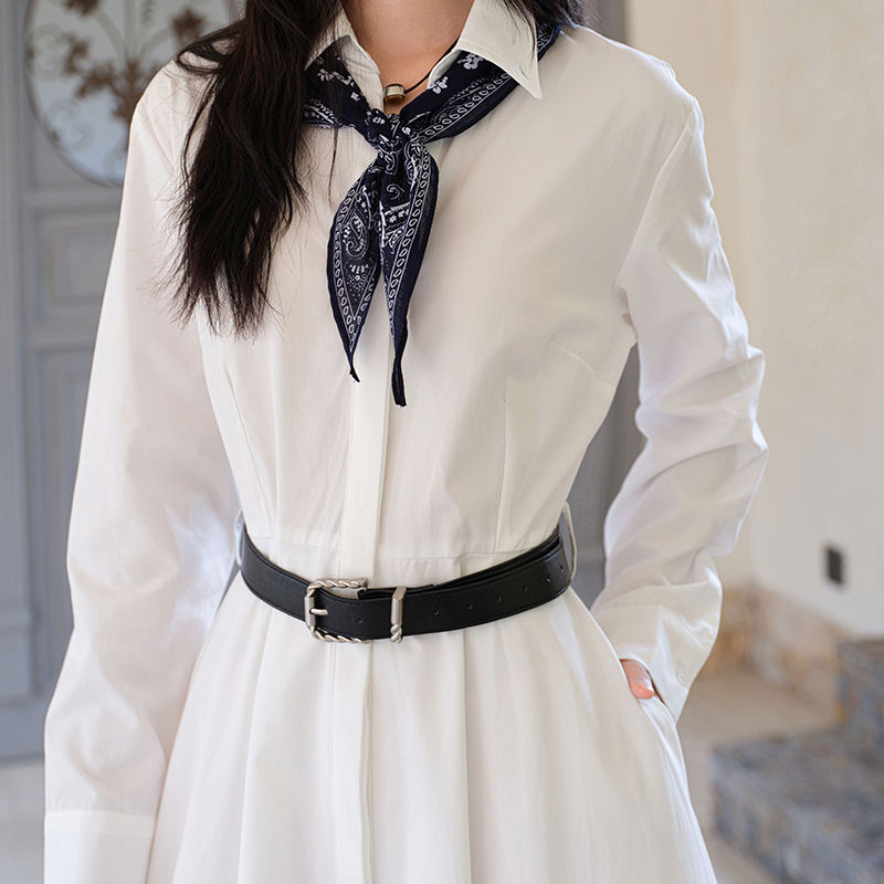 Tags: long sleeve white shirt dress for women, autumn A-line ankle length dress, collared cotton dress with sash belt, french style minimalist white dress, women's button down long dress, regular fit white dress for fall, cotton lyocell blend shirt dress, versatile work to weekend white dress, solid white dress with turn down collar, how to style a long shirt dress, classic white A-line midi dress, full sleeve collared dress for autumn, elegant white dress for middle age, non-stretch structured cotton dress