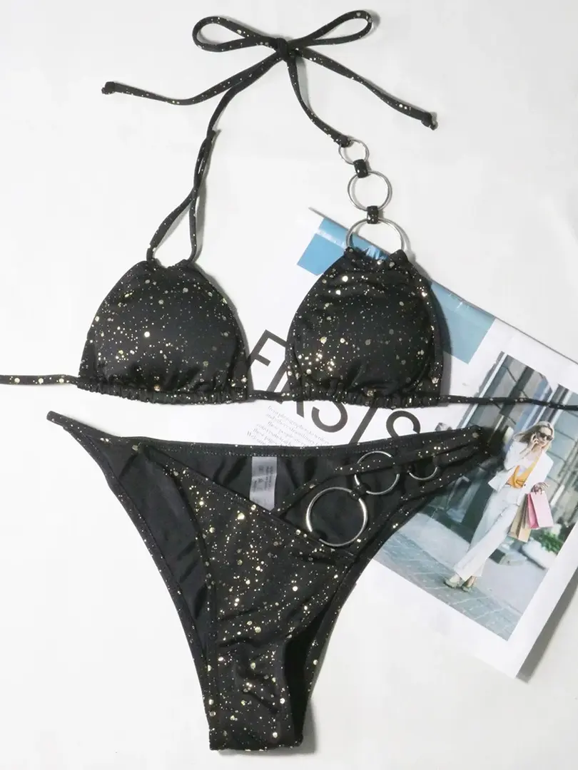 Asymmetric Metal Rings Bikini Swimsuit Two Piece