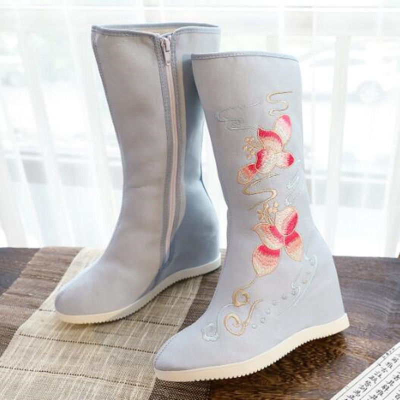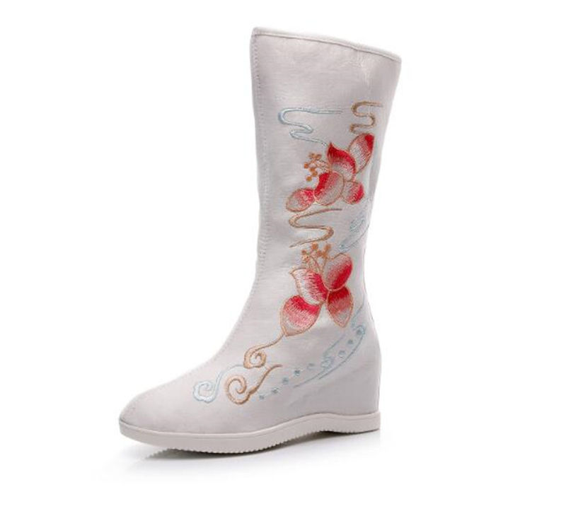 Tags: women's floral embroidered mid-calf boots, vintage style boots with embroidery, satin boots with floral pattern, height increasing boots for women, round toe zip up boots, ethnic style embroidered boots, autumn floral boots for ladies, comfortable high heel mid-calf boots, women's embroidered boots for spring, what to wear with floral boots, stylish zip-up boots with flower design, ladies vintage floral boots, mid-calf boots with cotton lining, high heel boots with fabric insole