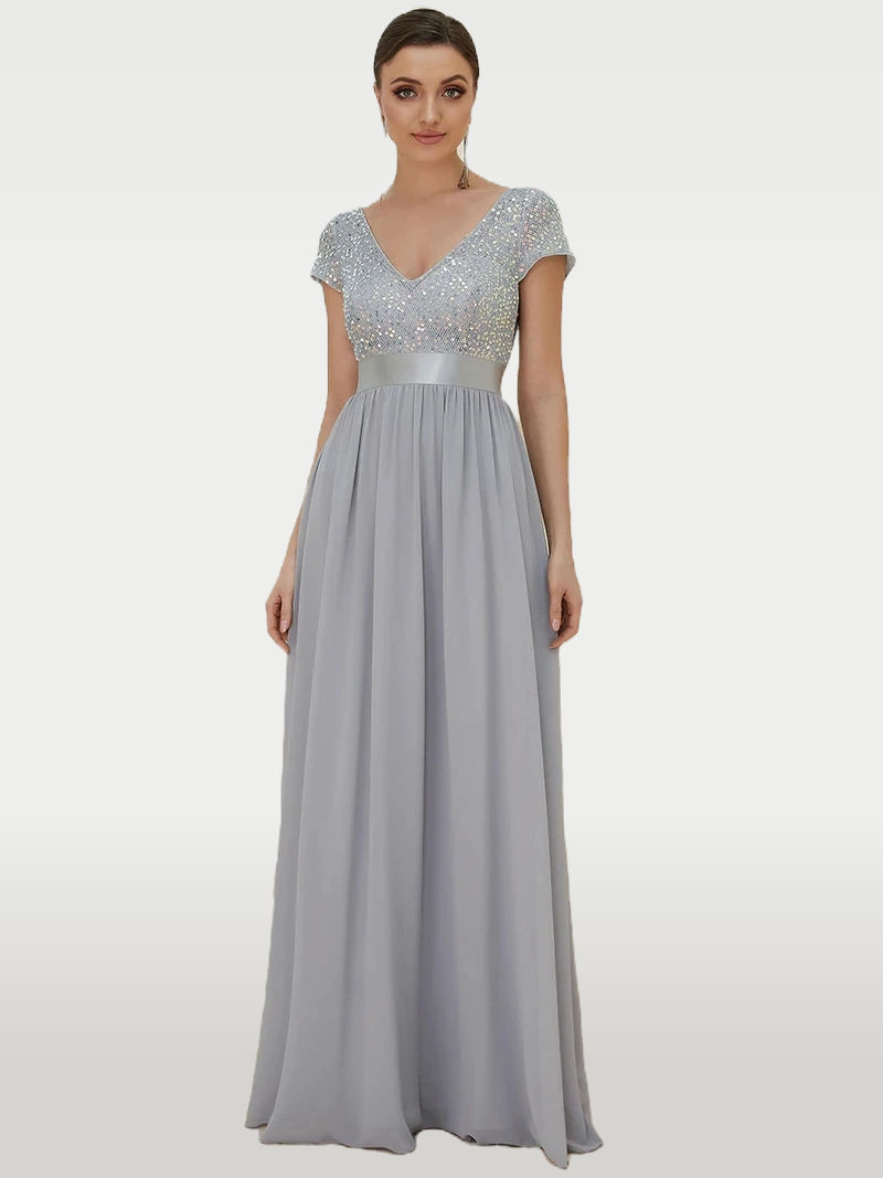 Look stunning and sophisticated at your next formal event in this elegant backless V-neck A-line evening dress. The soft chiffon fabric drapes beautifully, creating a flattering silhouette that flatters all figures. The timeless V-neckline adds a touch of sophistication, while the open back adds a touch of modern allure. This dress is perfect for prom, galas, weddings, or any special occasion where you want to showcase your style with confidence.