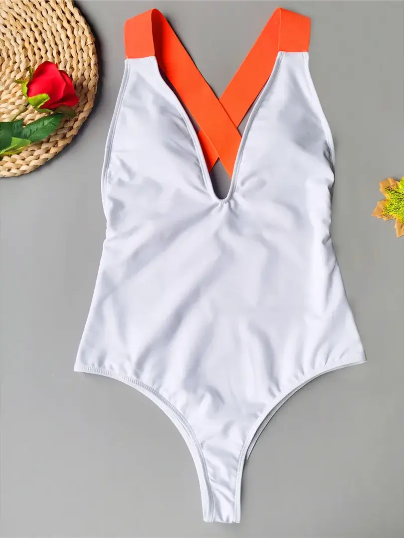 Backless Monokini Swimsuit One Piece Splicing Swimwear