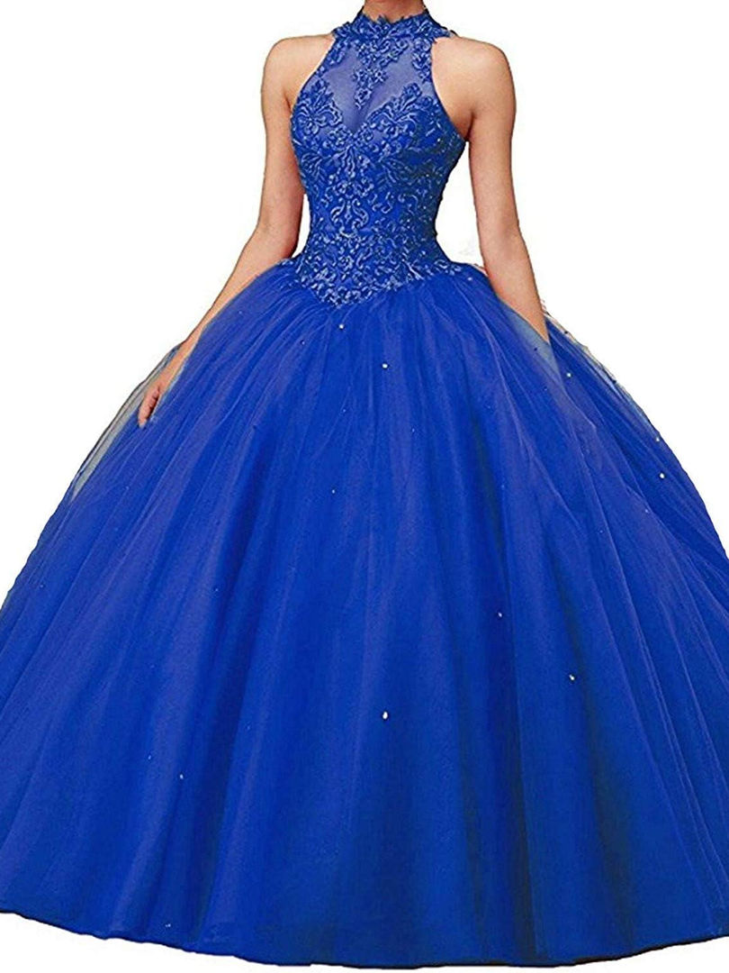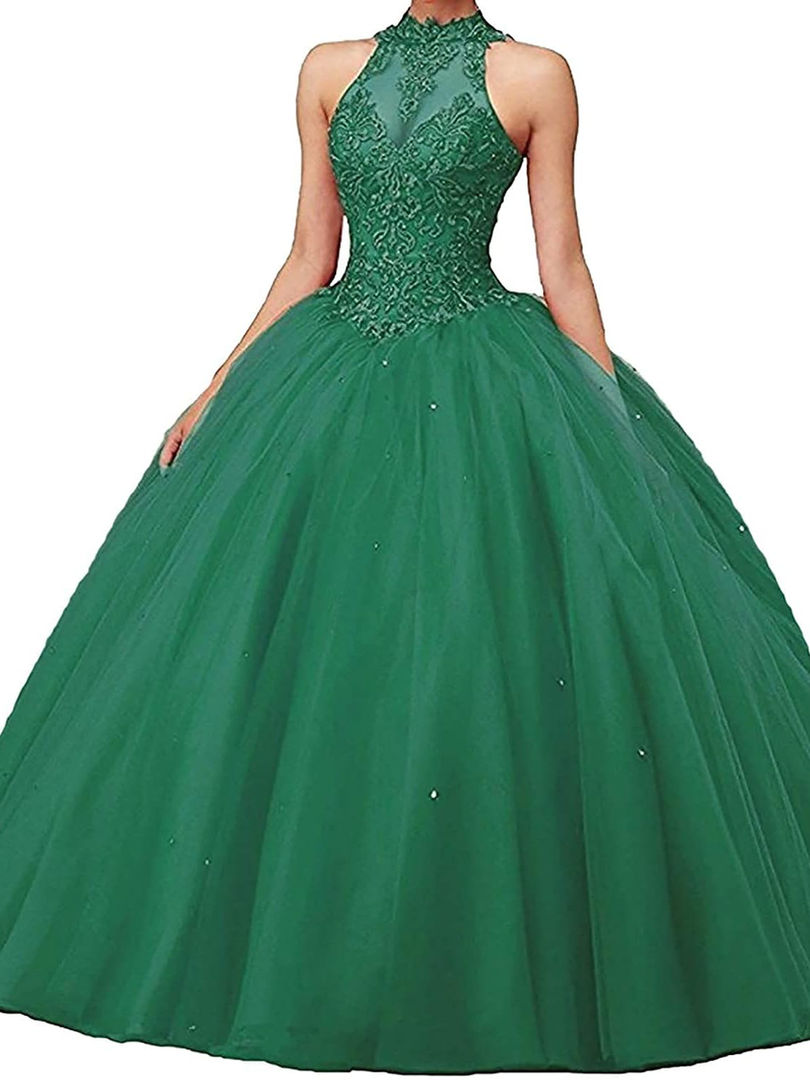 Ball Gown Quinceanera Dress High Neck Sleeveless Tulle Appliques Party Prom Dres