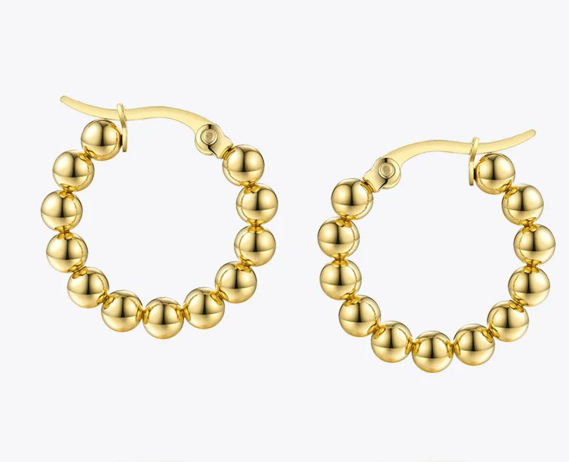 Small Gold Ball Hoop Earrings Round Comfortable Gold Plated Stainless Steel